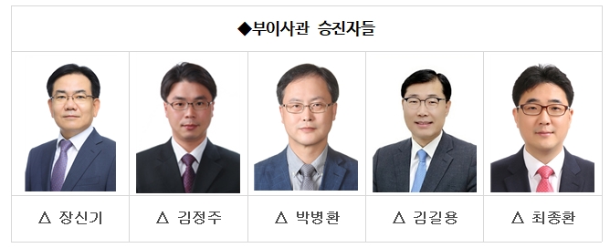 국세청은 21일 장신기 국세청 대변인, 김정주 국세청 기획재정담당관, 박병환 국세청 감사담당관, 김길용 부동산납세과장, 최종환 국세청 조사1과장을 오는 25일자로 부이사관 승진한다고 발표했다.