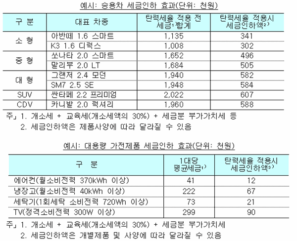 - 대용량 가전제품 : (기본세율) 5% → (변경) 3.5%