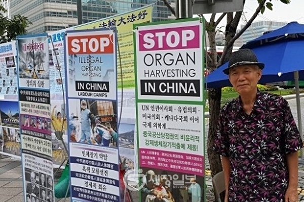 송 전 회장이 서명을 받고 있는 것은 DAFOA(강제장기적출에 반대하는 의사들-국제NGO단체)가 오는 12월 10일 세계인권선언기념일에 UN에 청원하기 위한 강제장기적출 반대 서명운동이었다.