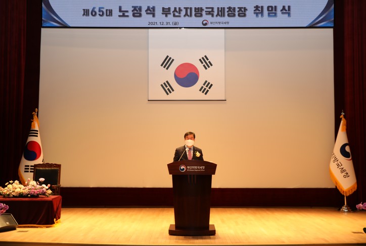 노정석 국세청 법인납세국장이 고공단가급 승진과 함께 제65대 부산국세청장으로 31일 취임했다. 노 신임 부산청장은 ‘자강불식(自强不息)’을 강조하며 어려운 세정환경 속에서도 본연의 업무에 충실히 할 것을 당부했다.