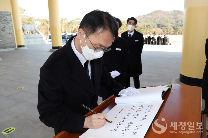 임재현 관세청장은 방명록에 '임인년 새해, 국민의 신뢰를 얻는 관세청이 되도록 노력하겠습니다'고 적으며 새해 각오를 다졌다.