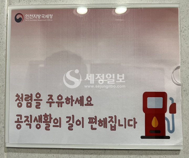 이와관련 인천청 한 직원은 “현재 인천국세청에는 청사내 곳곳에 청렴포스터가 게시되면서 직원들에게 ‘청렴’에 대한 생각을 떼려야 뗄수 없는 진드기 청렴행정이 되고 있다”고 전했다.