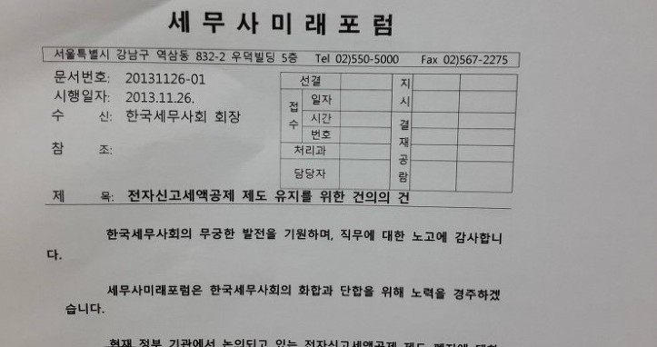 다음은 세무사미래포럼이 세무사회에 제출한 건의서 전문이다.