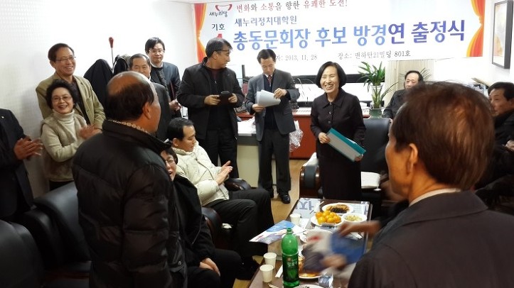 방 세무사는 이어 변화와 소통을 최우선 과제로 삼아 기수별 모임과 지역별 모임의 활성화, 중앙당사로의 총동문회 사무실 이전 추진, 당 지도부와의 정례 간담회 및 토론회 추진, 2014년 지방선거와 2016년 총선에서 총동문회 공천 지분의 요구 등의 공약을 내놨다.
