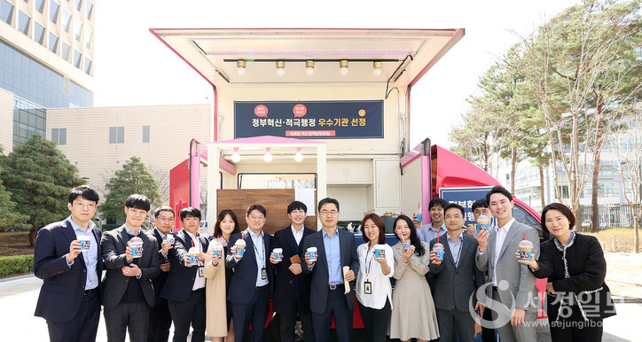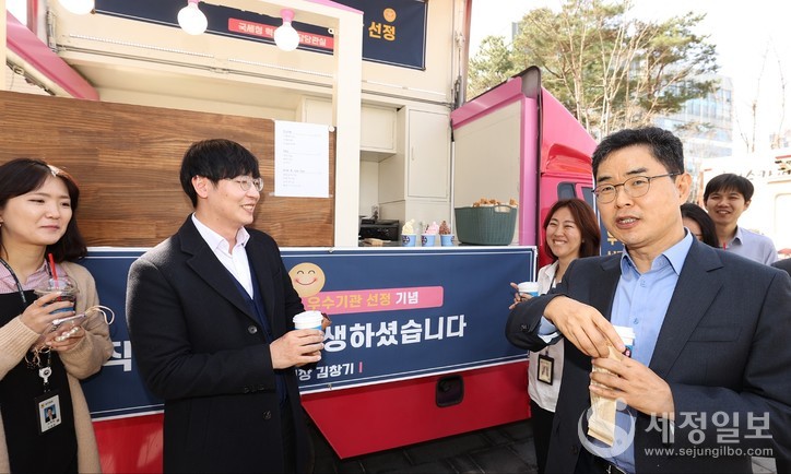 김창기 국세청장이 국세청 직원들에게 간식차와 커피차를 쐈다. 국세청이 정부혁신・적극행정 우수기관으로 2개 부문에서 수상하면서 이를 기념하기 위한 깜짝 선물이다.