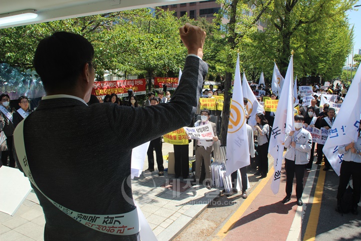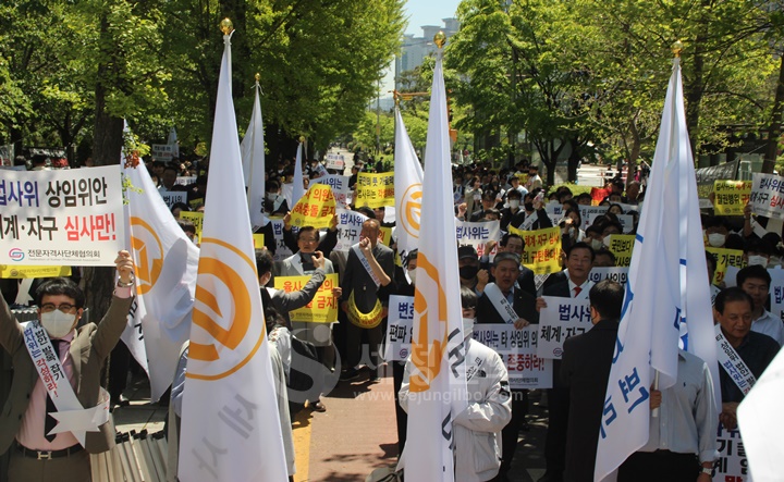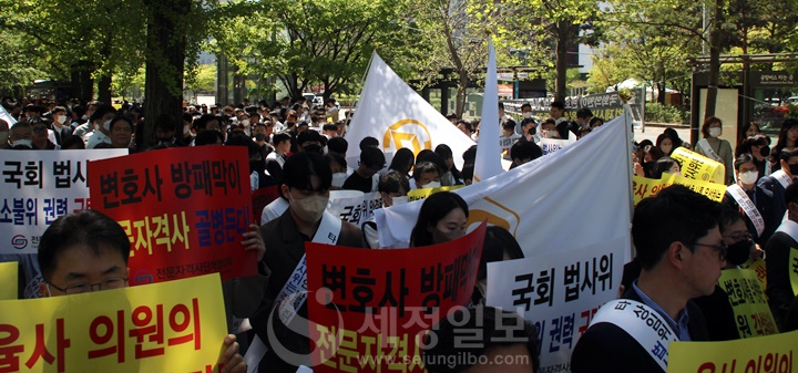 19일 오전 11시 전문자격사단체협의회(회장 홍장원) 소속 1000여 명은 국회의사당역 국민은행 서관 앞에서 ‘국회 법제사법위원회 규탄 대회’를 열어 변호사 직역 수호에 앞장서는 법제사법위원회의 공정하고 정당한 법안심사를 촉구했다.