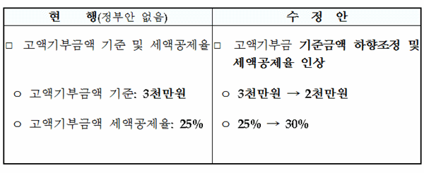 [2]고액기부금액 기준 하향조정 및 세액공제율 인상(소득세법 §59의4④)