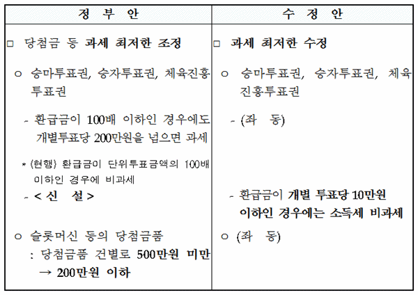 < 수정이유 > 승마투표권 등의 과세최저한 기준 합리화