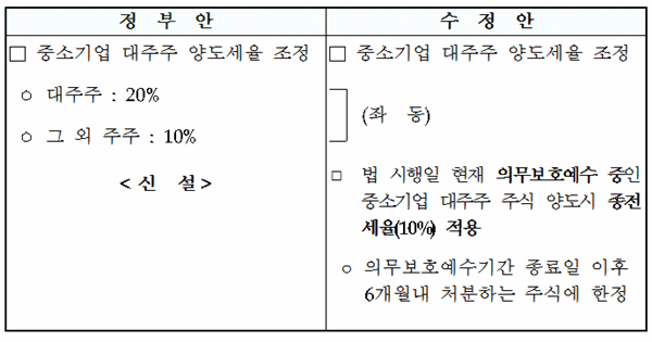 < 수정이유 > 의무보호예수 중인 주식의 경우 양도세율 변경 전에 주식을 처분할 수 없음을 감안