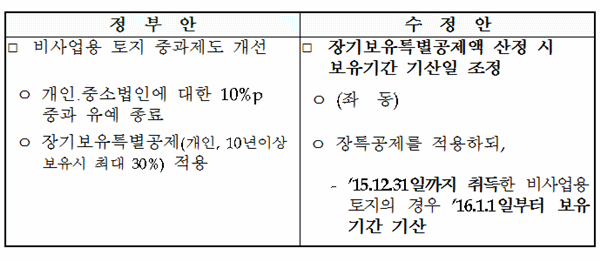 < 수정이유 > 비사업용 토지 중과제도의 취지 감안