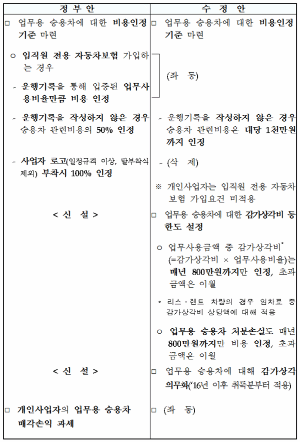 [1]업무용 승용차 과세 합리화(법인세법 §27의2, 소득세법 §33의2)