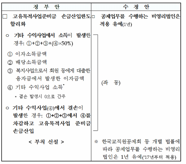 < 수정이유 > 공제업무를 수행하는 비영리 법인의 특수성을 감안