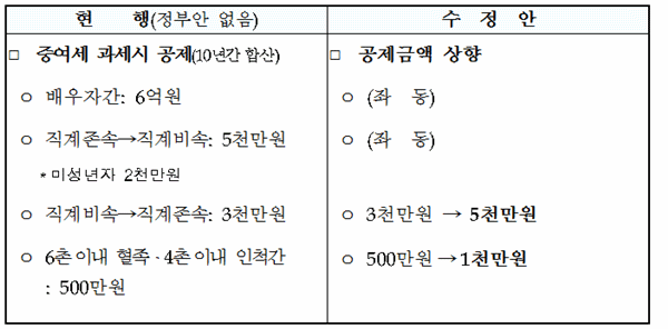 [6]증여재산에 대한 공제액 상향 조정(상증법 §53)