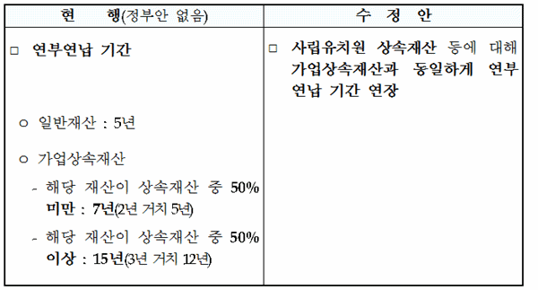 [3]사립유치원 상속재산 등에 대한 연부연납 기간 연장(상증법 §71)