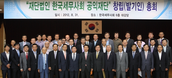 세무사회 창립 50주년을 맞아 그동안 추진해 왔던 사회공헌활동을 더욱 활발하게 전개하겠다면서 세무사들로부터 11억원의 성금을 모금해 한국세무사회공익재단을 설립했다. 발기는 2012년, 설립은 2013년 5월이었다.