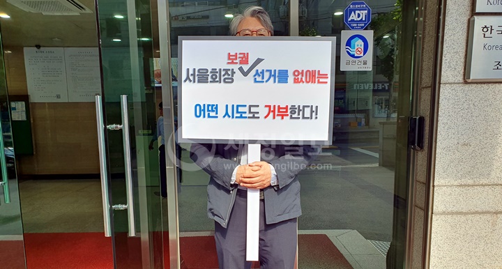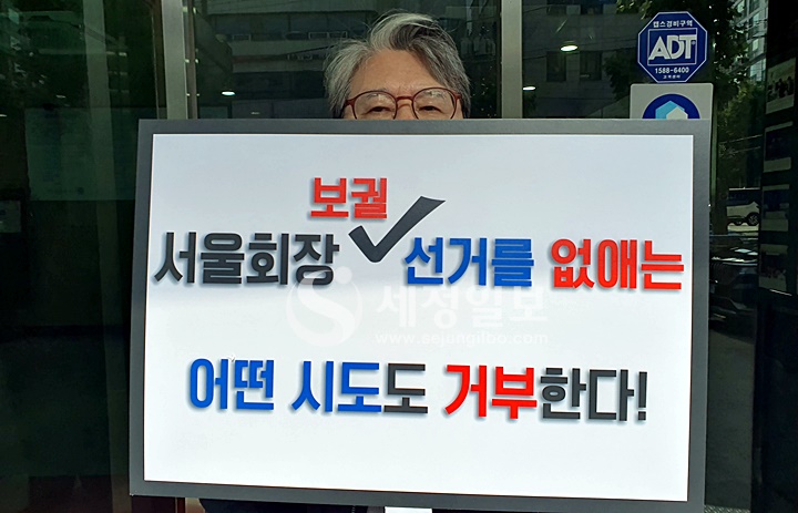 서울지방세무사회 보궐선거를 없애는 어떠한 시도도 거부하며 회칙에 의해 정상적으로 진행해야 한다고 주장하는 '1인시위'가 등장했다.