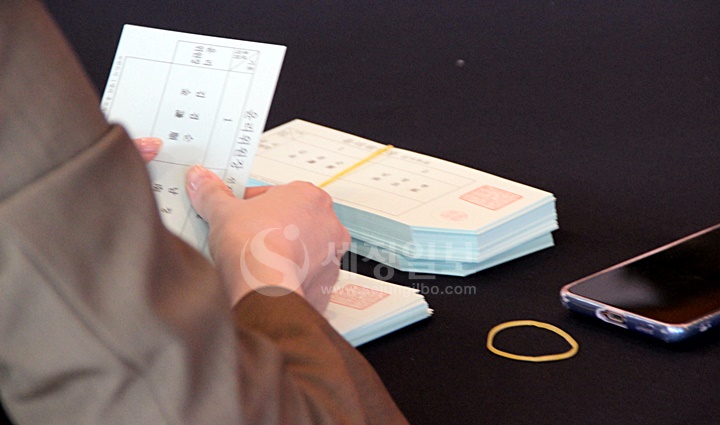 이날 선거에서는 ‘세무사회 싹 바꾸겠습니다’, ‘잘 하겠습니다’, ‘자랑스러운 회장이 되겠습니다’, ‘삼쩜삼 등 불법 세무대리 뿌리 뽑겠습니다’ 등 다양한 선거 공약이 행사장을 가득 메운 가운데 유권자 840명 중 664명이 투표에 참여해 투표율 79%를 기록했다.