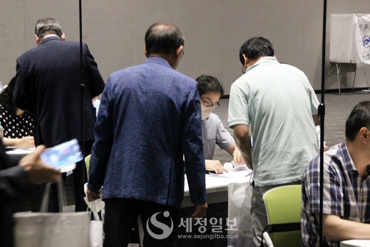 이날 정기총회 전 수원 영통구 수원컨벤션센터에 마련된 투표 현장 분위기를 세정일보 카메라가 잡아봤다.