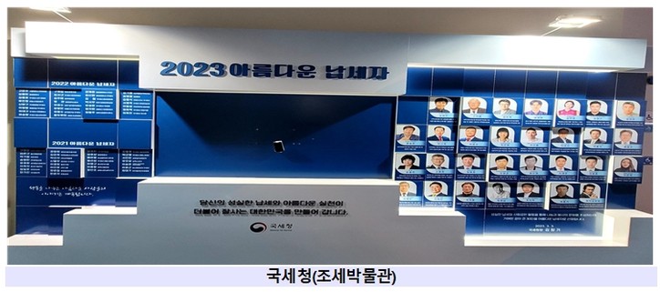 국세청은 매년 성실납세와 더불어 기부・봉사를 실천한 ‘아름다운 납세자’를 초청해 상징패를 수여하고, 국립조세박물관에 홍보관을 설치해 ‘아름다운 납세자’ 상의 선정 의미와 가치를 널리 알리고 있다.