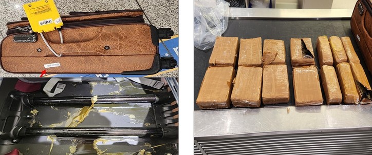 남아공발 여행자의 캐리어 바닥에 은닉한 벽돌 형태의 대마초 10,054g 적발