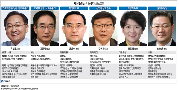 박근혜 대통령은 21일 신임 경제부총리 겸 기획재정부 장관에 새누리당 유일호 의원을, 사회부총리 겸 교육부 장관에 이준식 서울대 교수를 내정했다.
