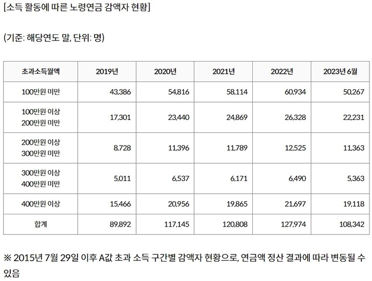 국회 보건복지위원회 소속 더불어민주당 최혜영 의원실이 국민연금공단에서 받은 '소득 활동에 따른 노령연금 적용현황' 자료에 따르면, 노령연금 수급자가 해마다 증가하면서 감액자도 늘어났다.