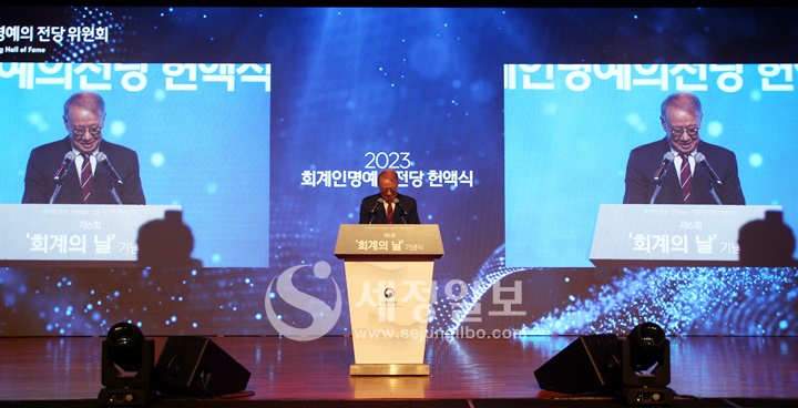 제6회 회계의 날 기념식이 여의도 63 컨벤션센터에서 개최된 가운데 우리나라 회계제도 및 회계업계 발전에 공헌한 이를 기리기 위한 제2부 ‘`23 회계인명예의전당 헌액식’에서 연세대학교 주인기 명예교수(국제회계사연맹 회장)가 헌액인으로 선정됐다.