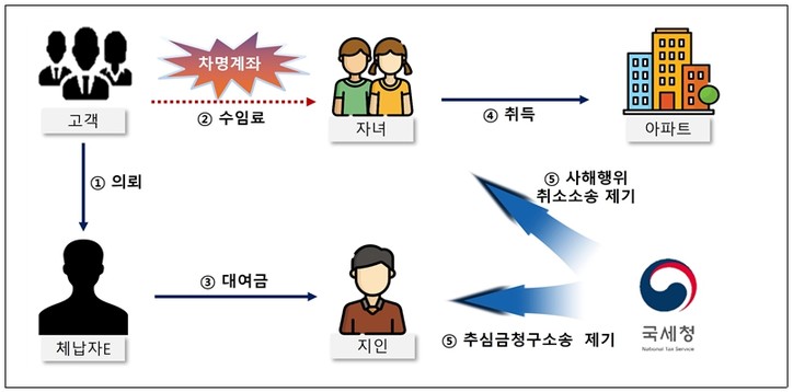 ○체납자는 사무장으로 근무중인 자녀 명의 계좌로 수임료를 받아서 재산을 은닉하고, 자녀의 부동산(아파트) 취득자금으로 사용하거나 지인에게 자금을 대여하는 등 강제징수 회피