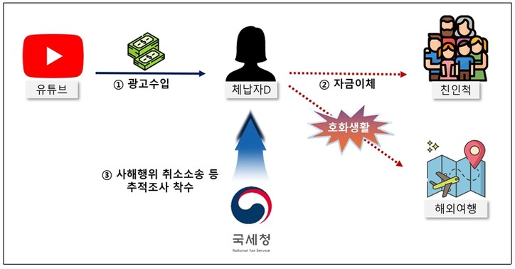 ○체납자는 구글(Google)로부터 광고수익 등으로 매달 수천만 원의 외화를 수취하고 있음에도 세금납부를 회피하며 빈번한 해외여행 등 호화생활 영위하였으며,