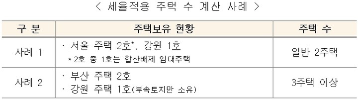 □종합부동산세 세율적용 주택 수는 인별(법인·단체 포함)로 전국에 보유하는 주택을 합한 개수입니다.