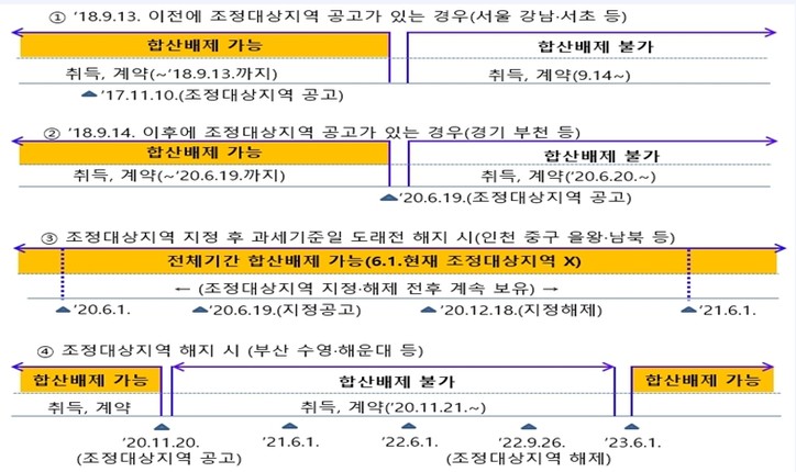 * ’18.9.14. 이후 조정대상지역 공고가 있는 경우는 조정대상지역 공고일까지 매매계약을 체결하고 계약금을 지급한 것 포함