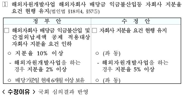 [`23년 세법개정안 정부안 대비 주요 수정내용 상세본] 소득세법 [`23년 세법개정안 정부안 대비 주요 수정내용 상세본] 법인세법 ※ 기획재정부 제공 세정일보 sejungilbo@sejungilbo.com 기자의 다른기사 저작권자 © 세정일보 무단전재 및 재배포 금지 관련기사 국회 기획재정위 통과된 15개 세법개정안 주요내용 최신 기사 차규근 “배당소득 분리과세율 인하 수용못한다…초부자 감세, 불평등만 심화” 관세사회, 우원식 국회의장 면담…성실신고확인제 필요성 설명 [현장] ‘국세공무원의 꽃’ `25년 하반기 서기관 승진자 30명에 임명장 수여식 국세청, ‘기획·정보·대변인실’ 사무관 자리 하나씩 늘린다 동아쏘시오그룹, 중대재해 대응 모의훈련 실시···심폐소생술·자동심장충격기 실습 NH농협은행, 2025년 ‘디지털금융 혁신대상‘ 최종 우수사례 선정 韓 3분기 경제성장률 26개국 중 3위…내년 2.3% 전망도 등장 차규근 “배당소득 분리과세율 인하 수용못한다…초부자 감세, 불평등만 심화” 추천기사 국세청, 태광산업 세무조사 ‘인프라·레저 계열사’까지…‘5년 치 장부’ 뒤진다 론스타와 13년 분쟁, 국제투자분쟁에서 최초 ‘대한민국 승’…조세주권 지켰다 국세청, 세무공무원 출신 세무사 등 ‘세금 유튜버’ 전수 확인했다 상속세 과세, 유산취득세로 변경 시 ‘국세청 세무조사 조항’도 바뀐다 '마약의 나라' 되나?…청년층 타깃 클럽마약 '케타민의 급습' 5년간 7.3배 급증 [세미콜론] 아직도 이런 폐습이~…국세청 ‘간부 모시는 날’ 고강도 감찰