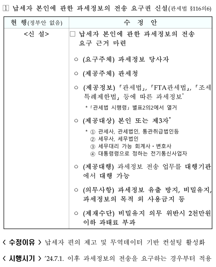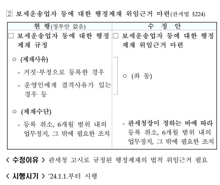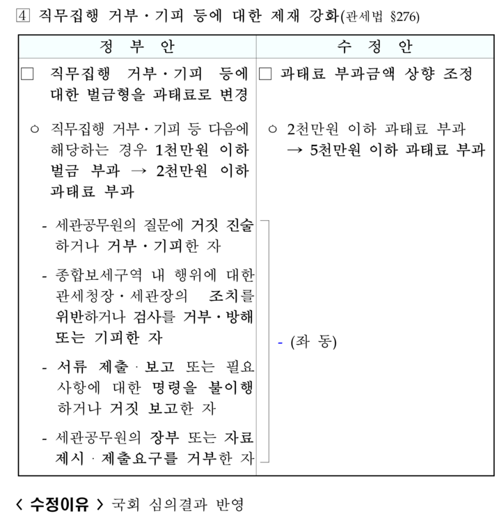 [`23년 세법개정안 정부안 대비 주요 수정내용 상세본] 관세법 ※ 기획재정부 제공 세정일보 sejungilbo@sejungilbo.com 기자의 다른기사 저작권자 © 세정일보 무단전재 및 재배포 금지 관련기사 국회 기획재정위 통과된 15개 세법개정안 주요내용 최신 기사 차규근 “배당소득 분리과세율 인하 수용못한다…초부자 감세, 불평등만 심화” 관세사회, 우원식 국회의장 면담…성실신고확인제 필요성 설명 [현장] ‘국세공무원의 꽃’ `25년 하반기 서기관 승진자 30명에 임명장 수여식 국세청, ‘기획·정보·대변인실’ 사무관 자리 하나씩 늘린다 동아쏘시오그룹, 중대재해 대응 모의훈련 실시···심폐소생술·자동심장충격기 실습 NH농협은행, 2025년 ‘디지털금융 혁신대상‘ 최종 우수사례 선정 韓 3분기 경제성장률 26개국 중 3위…내년 2.3% 전망도 등장 차규근 “배당소득 분리과세율 인하 수용못한다…초부자 감세, 불평등만 심화” 추천기사 국세청, 태광산업 세무조사 ‘인프라·레저 계열사’까지…‘5년 치 장부’ 뒤진다 론스타와 13년 분쟁, 국제투자분쟁에서 최초 ‘대한민국 승’…조세주권 지켰다 국세청, 세무공무원 출신 세무사 등 ‘세금 유튜버’ 전수 확인했다 상속세 과세, 유산취득세로 변경 시 ‘국세청 세무조사 조항’도 바뀐다 '마약의 나라' 되나?…청년층 타깃 클럽마약 '케타민의 급습' 5년간 7.3배 급증 [세미콜론] 아직도 이런 폐습이~…국세청 ‘간부 모시는 날’ 고강도 감찰