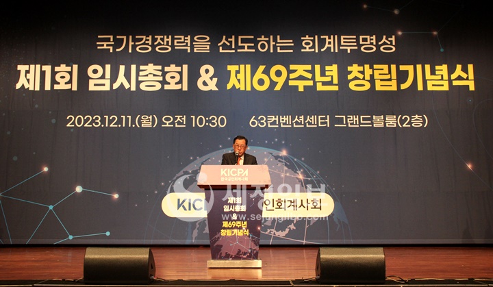 한국공인회계사회(회장 김영식)은 11일 오전 10시 30분 서울 여의도에 위치한 63컨벤션센터 그랜드볼룸에서 제1회 임시총회 및 제69주년 창립기념식을 개최했다.