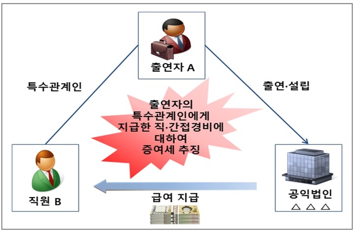 -△△△공익법인은 B가 출연자 A의 특수관계인(배우자의 형제자매)임에도 불구하고 직원으로 채용하여 급여를 지급함