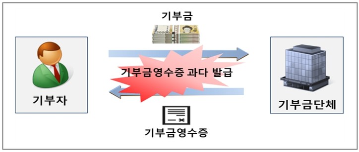 -실제 기부금 수령금액은 ○백만 원에 불과하나 기부금 영수증 발급금액은 ○○○백만 원에 달하는 등 대부분 기부금 영수증을 허위 발급함