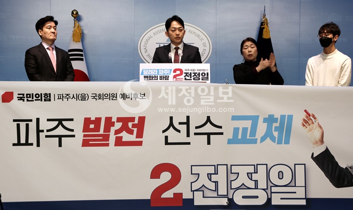 21일 국민의힘 전정일 예비후보는 국회 소통관에서 기자회견을 열고 제22대 국회의원 선거 파주시(을) 출마를 선언했다.