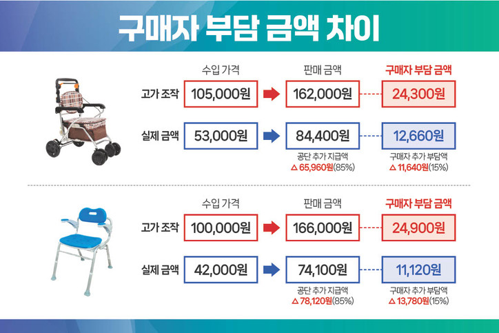 한편 몸이 불편한 노인들은 A씨가 복지용구의 수입가격을 높게 조작한 탓에 실제가격보다 약 2배 높은 비용을 지불한 것으로 확인됐다.