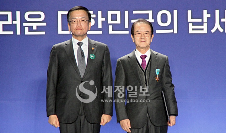 모범납세자 중 정부포상 수상자 8명은 철탑산업훈장에 ‘원전교역(주) 최호림 대표, 산업포장 에스제이에프 손성태 대표, 대통령 표창 ㈜엔티모아 장병권 대표가 선정 됐으며, 국무총리 표창에는 한국석유공업(주) 강승모 대표, ㈜경도상사 박춘배 대표, 제일씨앤피(주) 권오관 대표, 지코(주) 최명룡 대표, 한온시스템㈜ 나가수브라모니 라마찬드란 임원 등이다.