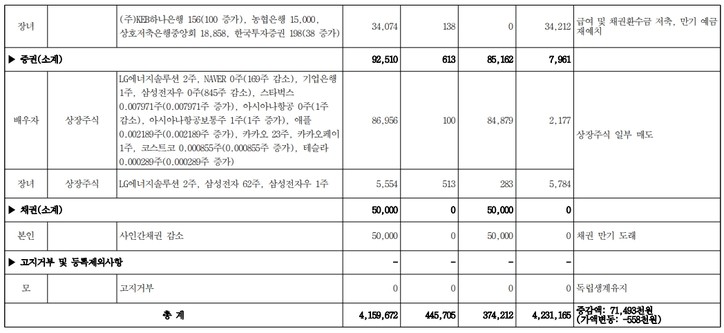 주식 보유 현황은 배우자 210만원, 장녀 570만원 등 800만원으로 신고됐다.