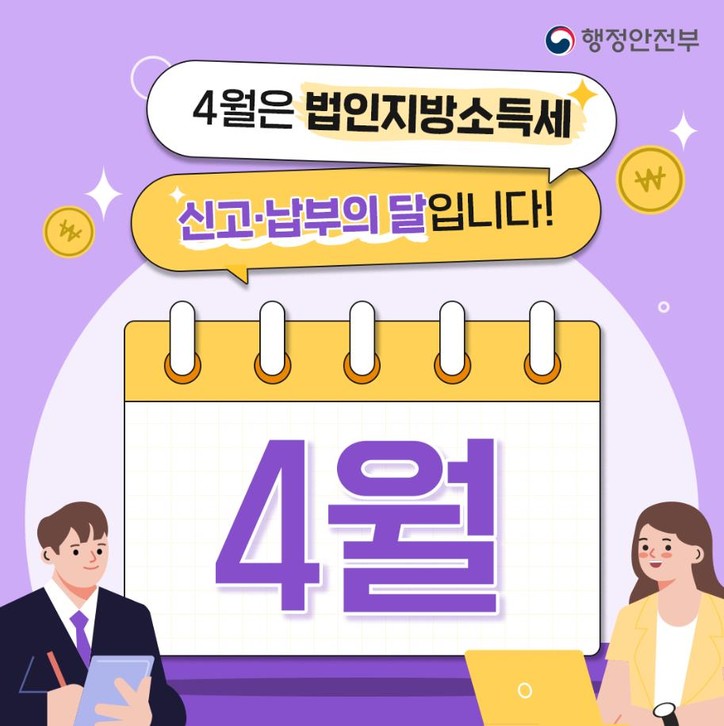 법인 소득에 대해 지방자치단체에 납부하는 법인지방소득세 신고·납부가 이번 한 달간 집중적으로 이뤄진다. 특히 올해부터 법인지방소득세 분할납부제도가 도입되는데 납부할 세액 100만 원 초과 법인은 세액 일부를 납부기한 다음 날부터 1개월(5.31.), 중소기업은 2개월(7.1.) 이내 분납할 수 있다.