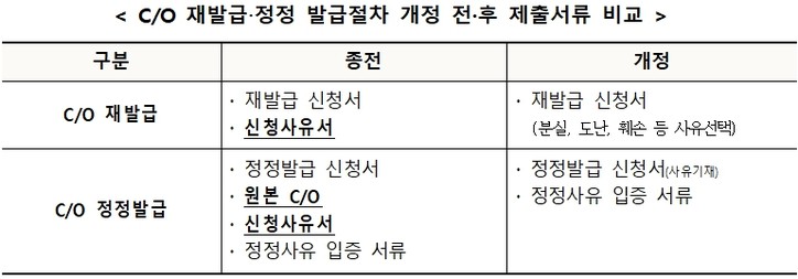 또한 C/O 발급 절차도 간소화돼 C/O 재발급‧정정발급 신청 시 제출해야 했던 ‘신청사유서’를 제출대상 서류에서 삭제되며, ‘C/O 재발급·정정발급 신청서’에 신청사유를 선택하거나 기재할 수 있도록 양식이 개선된다.