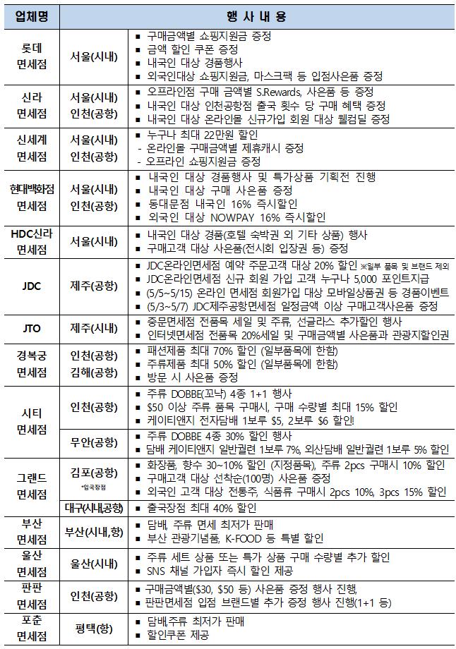 이번 행사는 여행 성수기에 맞춰 외국인 관광객의 방한과 내·외국인 여행객의 국내 소비를 촉진하고 면세산업을 활성화하기 위해 마련됐다.