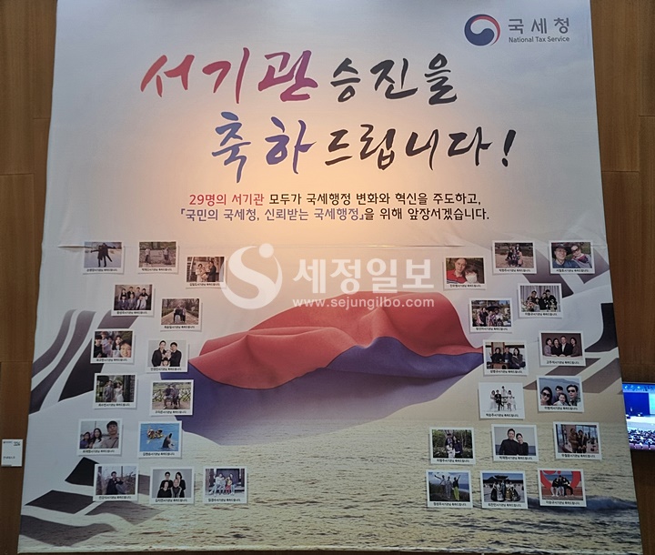 “29명의 서기관 모두가 국세행정 변화와 혁신을 주도하고 ‘국민의 국세청, 신뢰받는 국세행정’을 위해 앞장서겠습니다”, 15일 세종시 국세청사 3층 대강당에 내걸린 문구다.