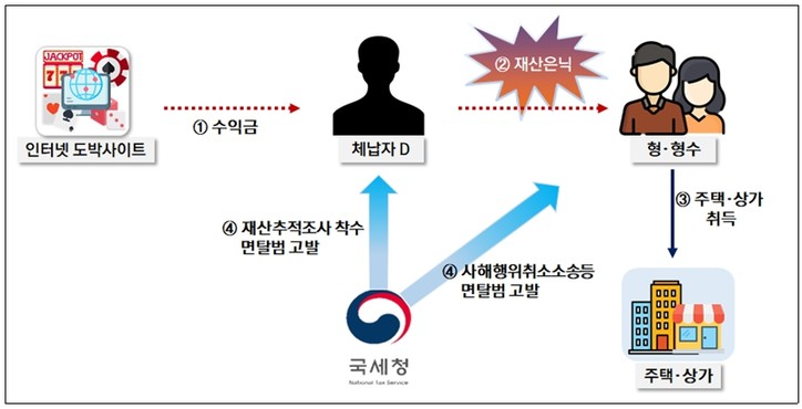 ○D는 인터넷 도박 사이트를 운영하면서 수입금액을 누락한 혐의로 세무조사를 받고 종합소득세 등을 납부하지 않아 체납 발생함