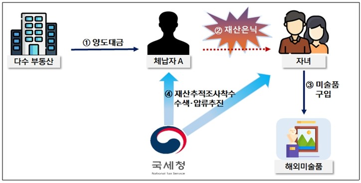 자녀 명의를 이용해 해외에서 미술품을 구입하는 수법으로 재산을 은닉한 체납자