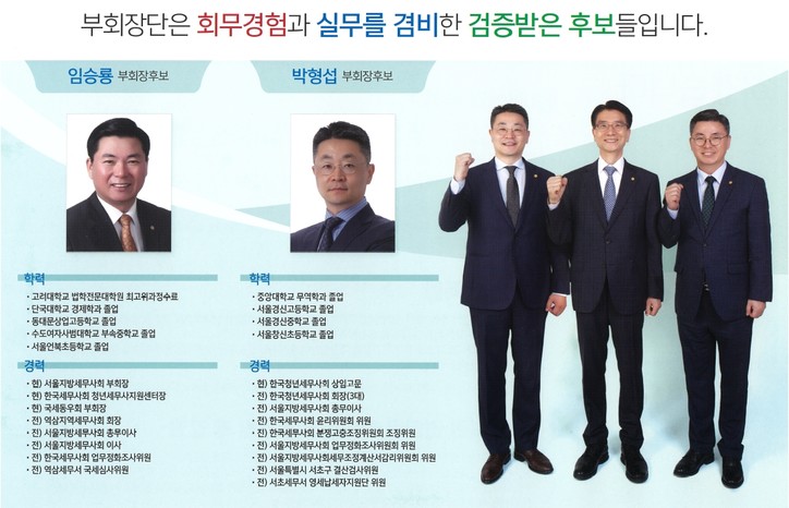 회장 후보 임채수, 부회장 후보 임승룡, 부회장 후보 박형섭 올림