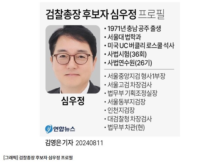 문재인 정부와 윤석열 정부에서 두루 요직을 거친 심 후보자도 검찰 조직에 대한 이해도가 높고 정무 감각도 뛰어난 것으로 알려졌다.