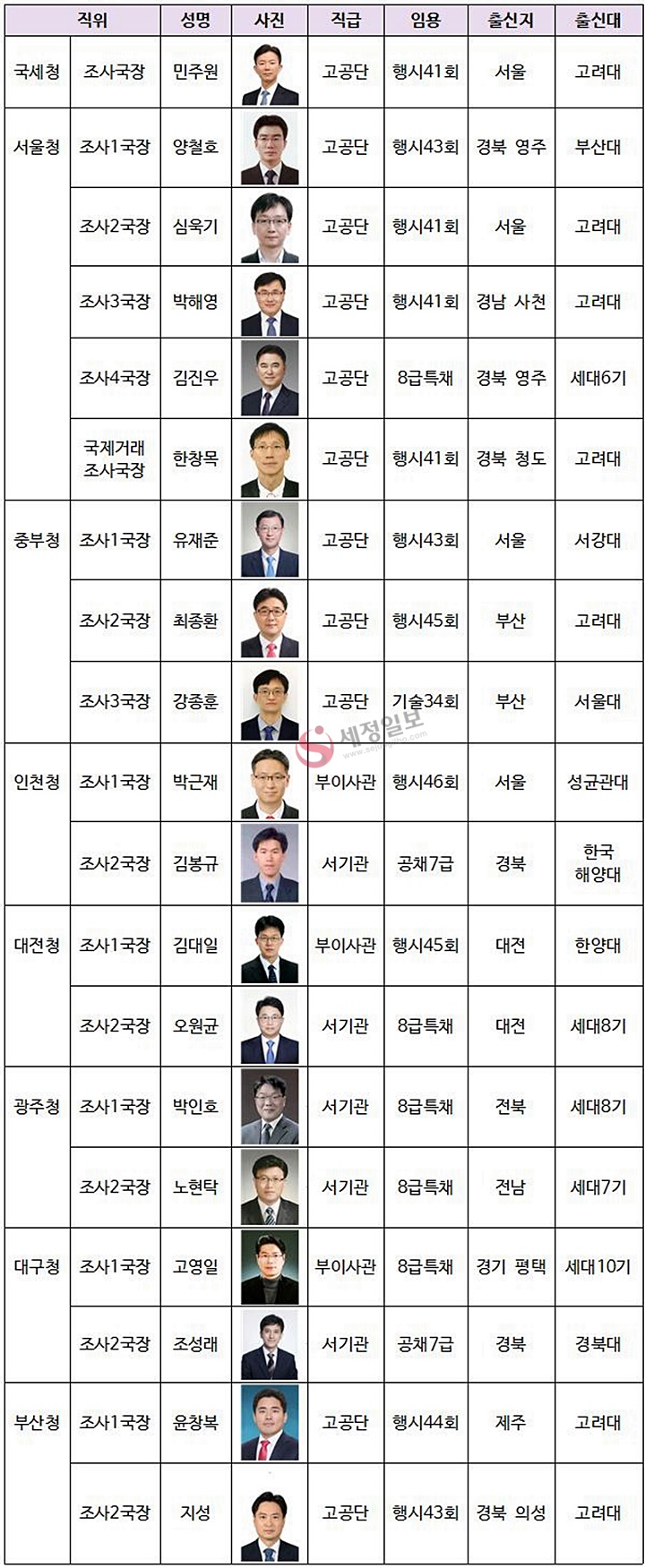 ◆국세청 조사국장들 현황 (2024년 9월2일 현재)