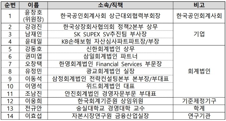 ※ 한국공인회계사회 지속가능성위원회 명단(총 14인)